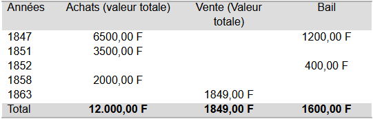 • la valeur de 20 francs de loyer dû par Mr Blanquet pour la location de diverses parcelles,