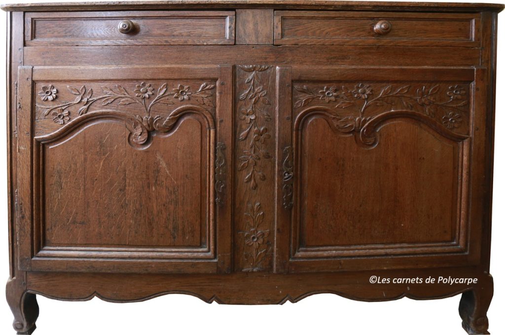 La future épouse apporte « son trousseau composé de 18 draps, 24 chemises, 6 taies d’oreiller, 4 nappes, 16 jupes, 12 tabliers, 6 apollons[3], 18 mouchoirs de cou et de poche, 12 coiffures diverses plus un lit composé d’un matelas, un lit de plumes, un traversin et deux oreillers pareils, une couverture de laine blanche, une courtepointe et un tour de lit complet, une armoire en bois de chêne à deux battants fermant à clef, une glace, un parapluie, un rouet, un trail ( ?), deux chaises et autres menus objets à l’usage ordinaire et exclusif de femme, le tout prisé à la somme de 900 francs. »
