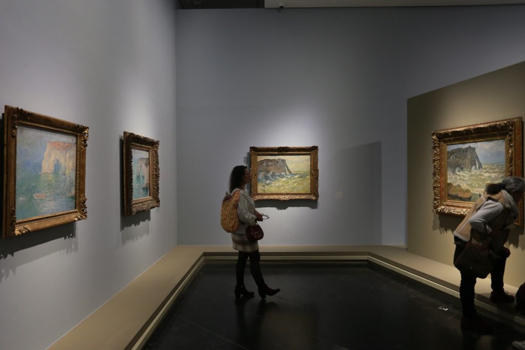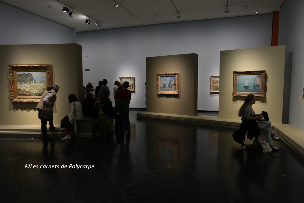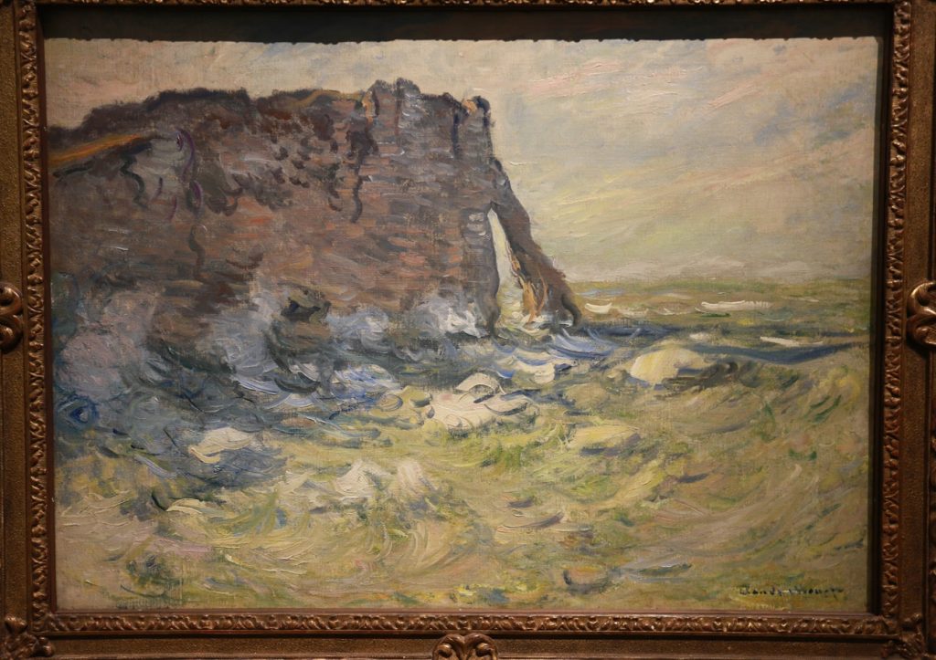 La 5e salle est consacrée à Claude Monet, qui consacra près de 80 toiles au total aux falaises étretataises, s’attachant, à la suite de Courbet, à rendre les variations de couleurs et de lumière au cours de nombreuses séances sur le vif. Figurent ici les représentations des falaises les plus connues du grand public (dont celle qui figure sur l’affiche de l’exposition) et quelques autres un peu moins connues mais tout aussi remarquables.