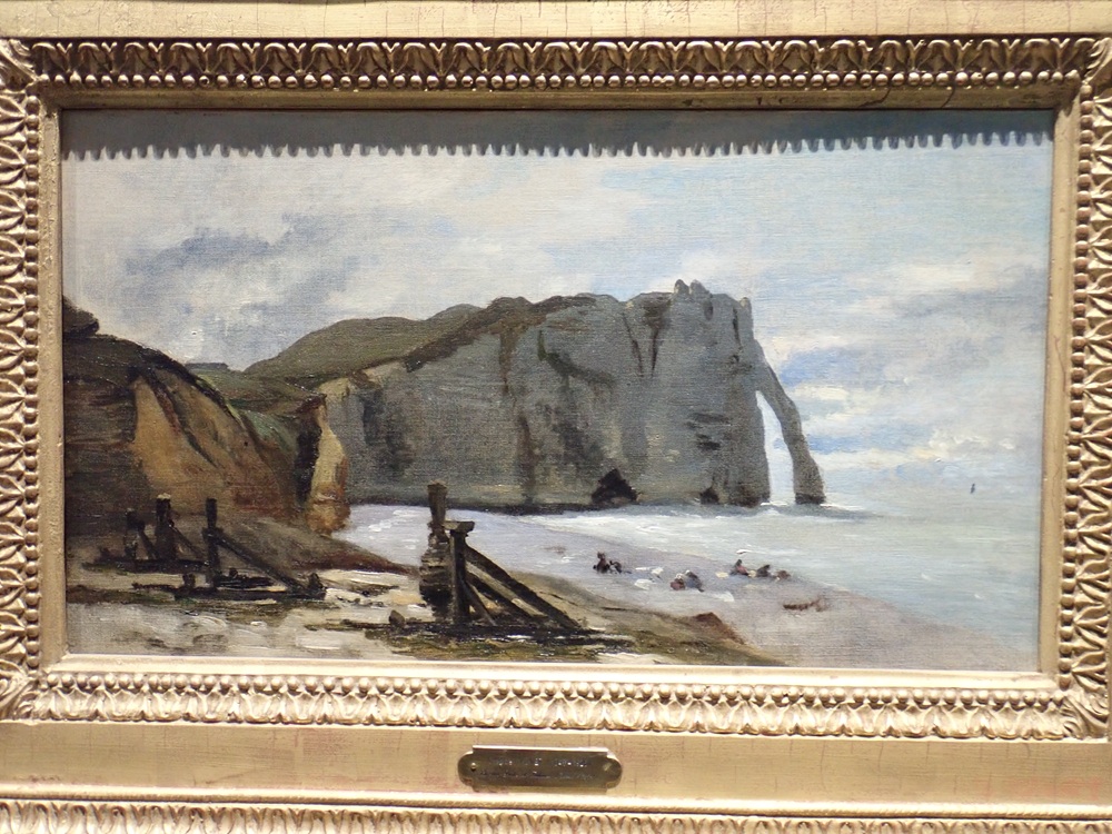 Du 29 novembre 2025 au 1er mars 2026, une exposition mettant Étretat à l’honneur s’est tenue dans la capitale des Gaules. Titrée « Étretat, par-delà les falaises » et annonçant en sous-titre les noms de Courbet, Monet et Matisse, elle était bien entendu centrée sur la peinture et plus particulièrement sur le motif qui a fasciné ces peintres. La présentation affichée sur le site du Musée des Beaux-Arts de Lyon, qui accueillait l’exposition, met en avant quatre œuvres en particulier : deux variantes de La Vague par Gustave Courbet et deux tableaux de Claude Monet : Le Déjeuner et Mer agitée à Étretat. Deux de ces œuvres appartiennent aux collections du MBA de Lyon, les deux autres (Le Déjeuner, acquis en 1910 et une variante de La Vague, acquise en 1908) proviennent du Städel Museum de Francfort (Allemagne) (https://www.mba-lyon.fr/fr/fiche-programmation/etretat-par-dela-les-falaises). Depuis ce capital de départ, assez mince somme toute, le commissariat de l’exposition a su rassembler une somme impressionnante d’œuvres de très haute qualité, parmi lesquelles figurent les tableaux les plus connus consacrés à Étretat.