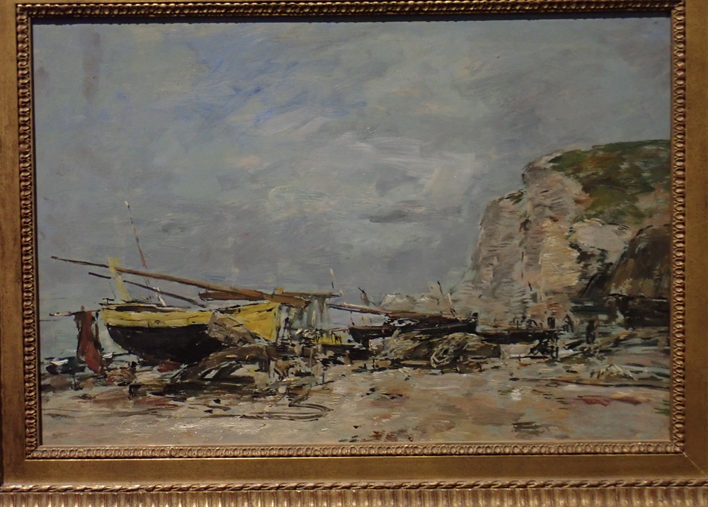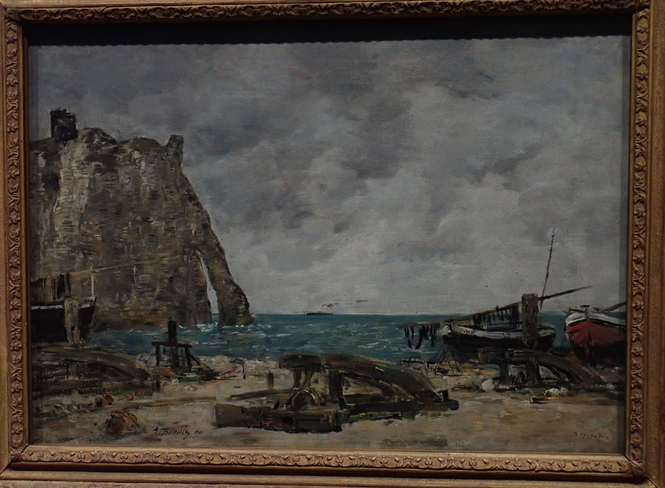 Eugène Boudin, peintre normand à qui le musée Marmottan-Monet consacra une exposition en 2025, est bien représenté dans la 6e salle, qui est consacrée aux peintres succédant à Claude Monet. Il s’y trouve en bonne compagnie, avec des artistes comme Gustave Caillebotte, Félix Vallotton, Paul Leroy, Jean-Francis Auburtin (à qui le Muma du Havre consacra une exposition en 2006) ou encore Sophie Schaeppi (la seule femme peintre présente dans l’exposition, qui séjourna à Étretat durant l’été 1899).